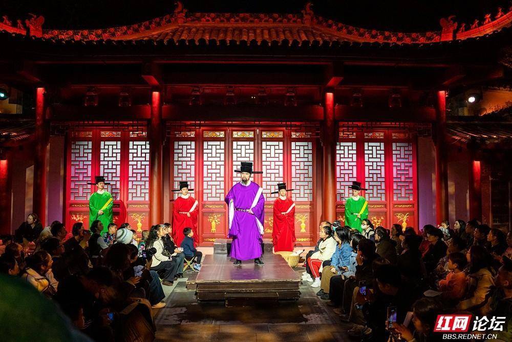 岳阳楼的故事,从来不止于课本里的“先天下之忧而忧”。当夜色笼罩洞庭湖畔,这座名楼化作沉浸式剧场的舞台,《今上岳阳楼》以四幕沉浸式演绎,将《岳阳楼记》的诞生与背后的精神内核层层铺展,让千年湖湘文脉在眼前鲜活流转。镜头里定格的帧帧画面,是读者剧场里翻古籍、摸字帖的新奇体验,是全息投影中《岳阳楼记》文字跃然眼前的震撼,也是与滕子京对话、看范仲淹与李白交游的动人瞬间。灯火摇曳的亭台里,婉转的演绎勾勒出《岳阳楼记》的诞生脉络;把酒临风的场景中,文人风骨与家国情怀交织;最终登楼咏诗的瞬间,“先天下之忧而忧,后天下之乐而乐”的精神穿越时空,与今人共鸣。置身其中,仿佛穿越千年,与范仲淹笔下的洞庭盛景、湖湘的人文底蕴撞个满怀。这不仅是一场演出,更是一次与岳阳楼灵魂的深度触碰,让我们对这座名楼、这篇名文的理解,多了几分鲜活的温度。