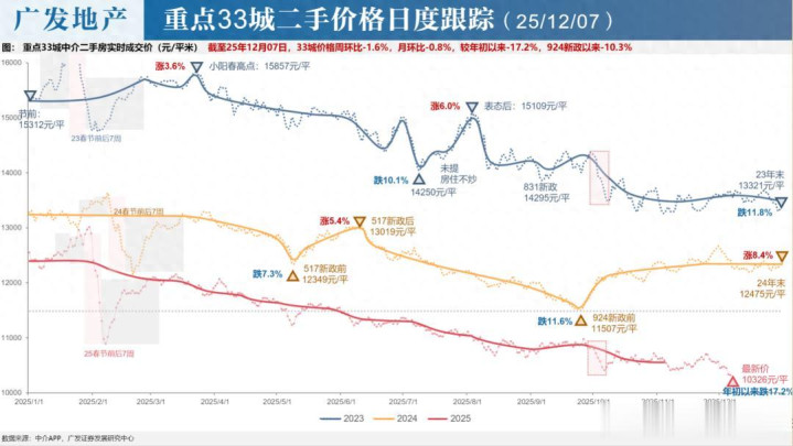 2025年,33个重点城市的二手房价格平均跌了17.2%。