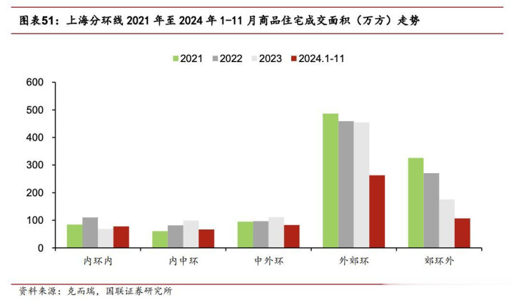 同样是上海,分化非常明显。外环内的新房成交量只跌了不到10%,外环外跌了超过60%,差了6倍。内中环二手房季度跌幅3%左右,郊环外接近6%,差了将近一倍。